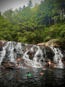 We can put ourselves atop a mountain with such little relative effort that we can actually explore, relax, and climb around before we venture back down. Then later that night we can make an impromptu decision to go on a search for swimming holes at 8PM and still wake up the next day for a 3 hour rollerski.