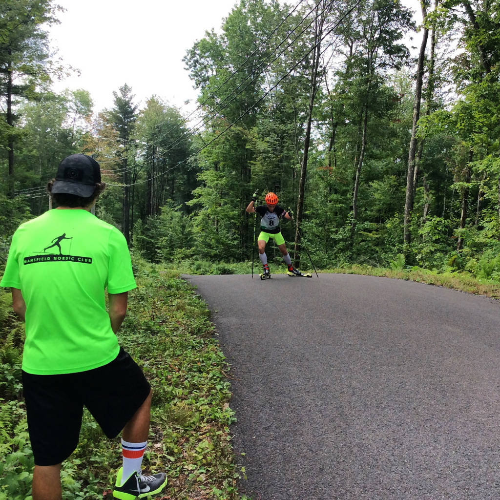 One of the most striking aspects of each race was the ways in which the top athletes were always finding speed, especially on the gradual downhills we take for granted on the Range loops. The section from Stadium loop to Pit loop is often where athletes chat it up and lazily drift down the trail. Not so for the racers! After watching the race footage, we did some speeds at the exact same spot and tried to learn how to best carry our momentum. Here’s a clip of a few athletes from the morning crew trying it out, with footage of top racers Leif Nordgren and Susan Dunklee up first for examples: