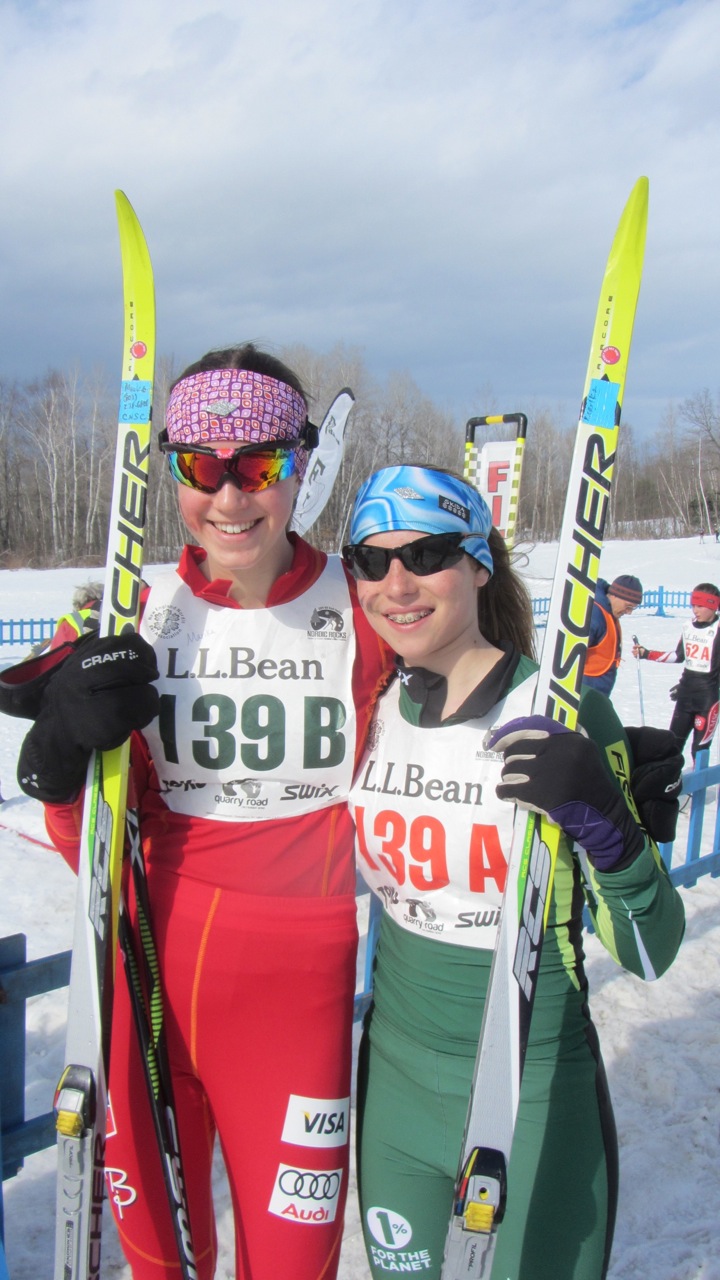 Greetings from Waterville Maine. After nearly 48 hours of rain the skies cleared for day one of the New England Bill Koch Festival. It was a picture perfect day – sunshine and a bit warm but the snow held up fine for the races and of course klister was the choice of the day. The Quarry Road Recreation Area adjacent to Colby College is true gem for cross-country skiers. MNC BK skiers along with our friends from the Frost Mtn Nordic Club represented the NWVT district with a superb effort and lots of smiles. We were the first club at the venue this morning and the last to leave because everyone was having such a good time.
