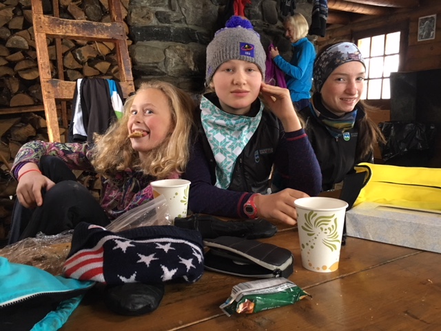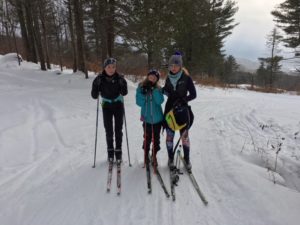 Finally some decent snow for a good long distance workout! Over a foot of snow at Trapps and snow still falling made for great classic conditions on Saturday. Three of our 3-day skiers skied the long way to the cabin for hot cider and snacks! Nice job Julia, Virginia & Carly!: