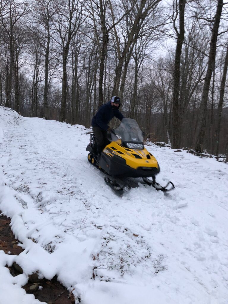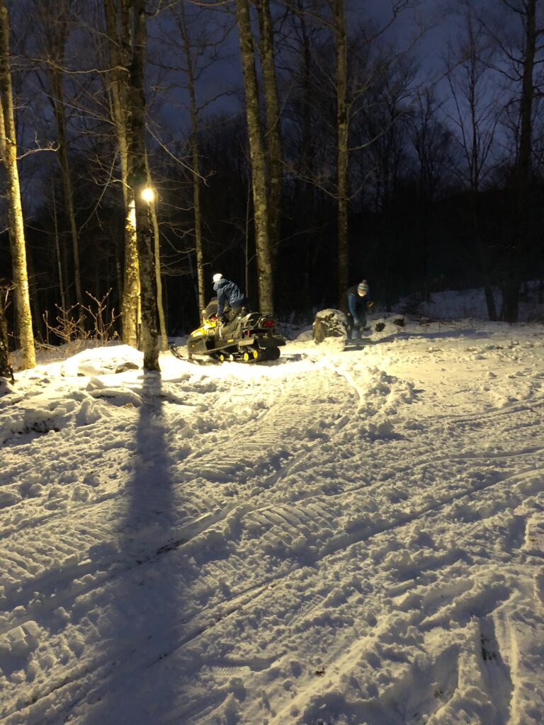 Next step involves taking the snowmobile, with the groomer detached, and packing the shoveled snow down with the tracks of the machine.
