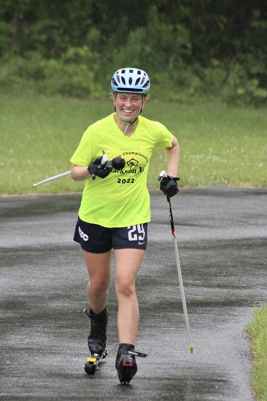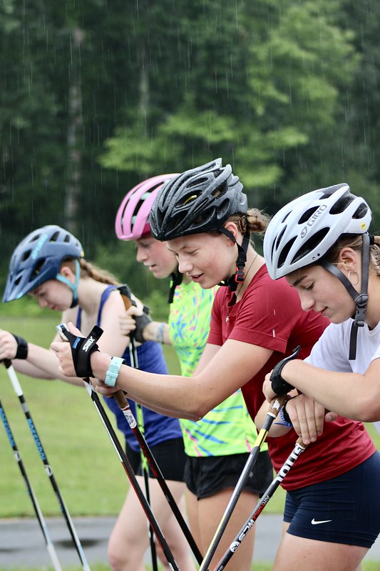 The day was rainy and hot, but nothing we haven’t gotten used to in Vermont this summer. Everyone was able to give this workout a go, as we also have a 3km version for younger skiers and those newer to rollerskiing.
