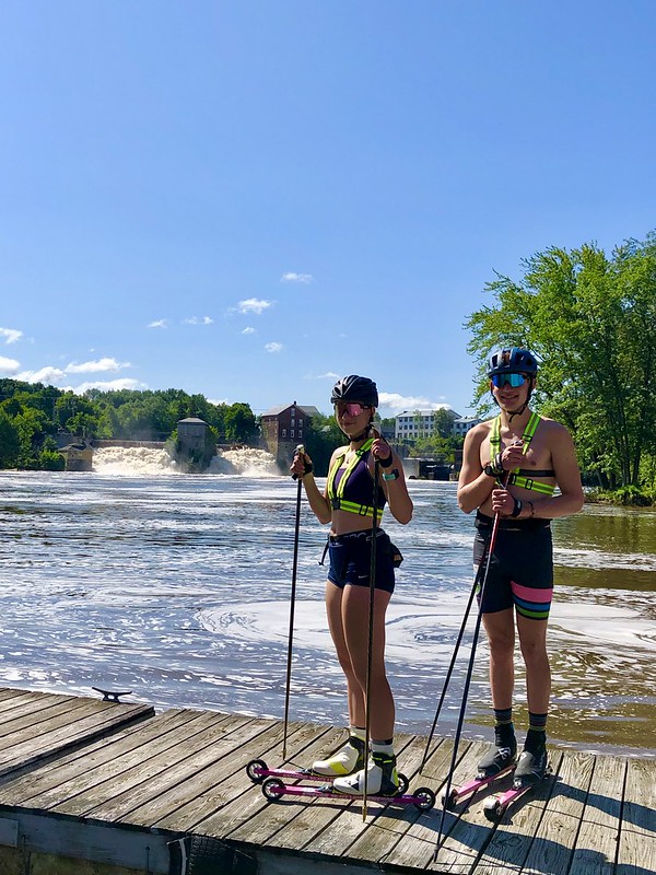 I’m sounding like a broken record at this point reiterating how impressed I am with these skiers, but it’s true. The week finished up with some different activities for folks, as there were some that took the beautiful Sunday to go for a bike ride and others who hiked over the weekend. Nico, Elsa and I enjoyed a really scenic rollerski in Ferrisburgh, and with only the three of us present (as opposed to a big squad) I took the opportunity to bring them on one of my favorite loops from college…it actually heads toward Monkton before swinging right through the city of Vergennes, hence why we don’t attempt it with a full team. We ended up taking a quick break by the falls for some local history lessons (shipbuilding for the Revolutionary War and War of 1812) and then emerged back on our usual route in the area, site of our 100km roll.