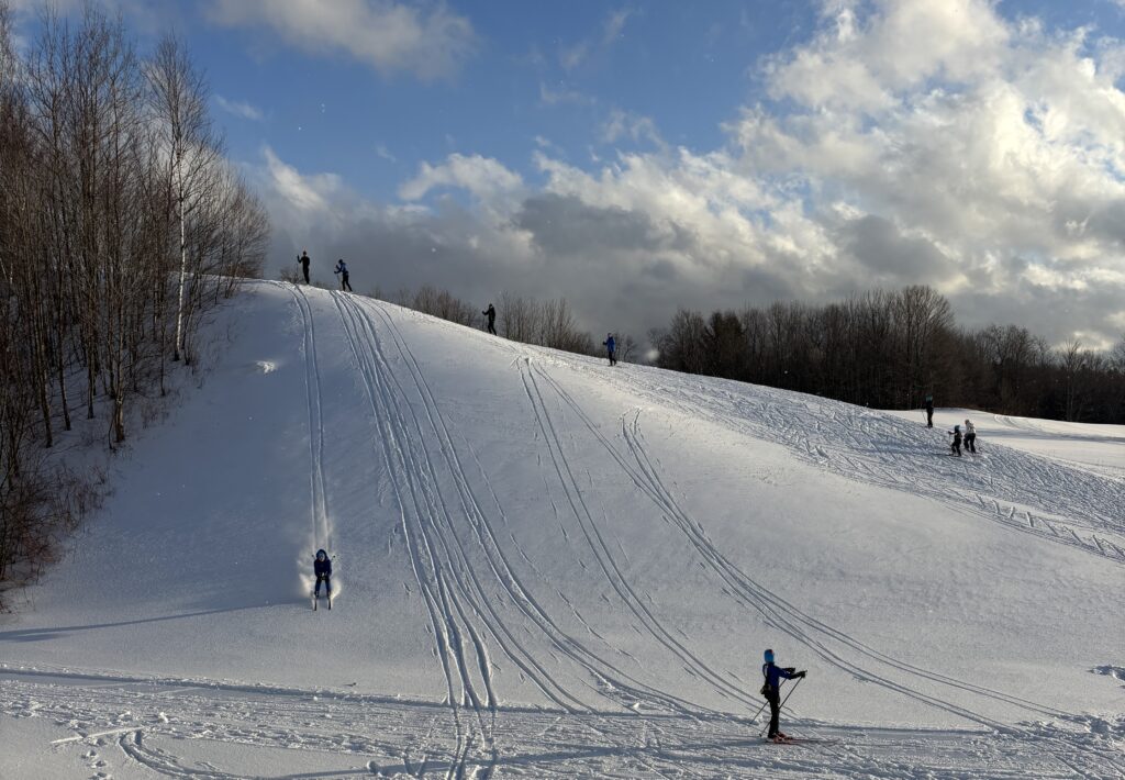 The snack table opens at 4:30 and skiers can stop to grab water, fuel up and a parent volunteer will record their number of laps. At the end we’ll do some number crunching and figure out how far the whole group skied. Last year we went from Montpelier, VT to Albany, NY!