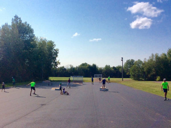 12 year old Matthew gettin’ sendy in the park. The US Ski Team wants to see kids age 8-12 beginning rollerski agility courses and fun slaloms…we take it to the next level with the skatepark!