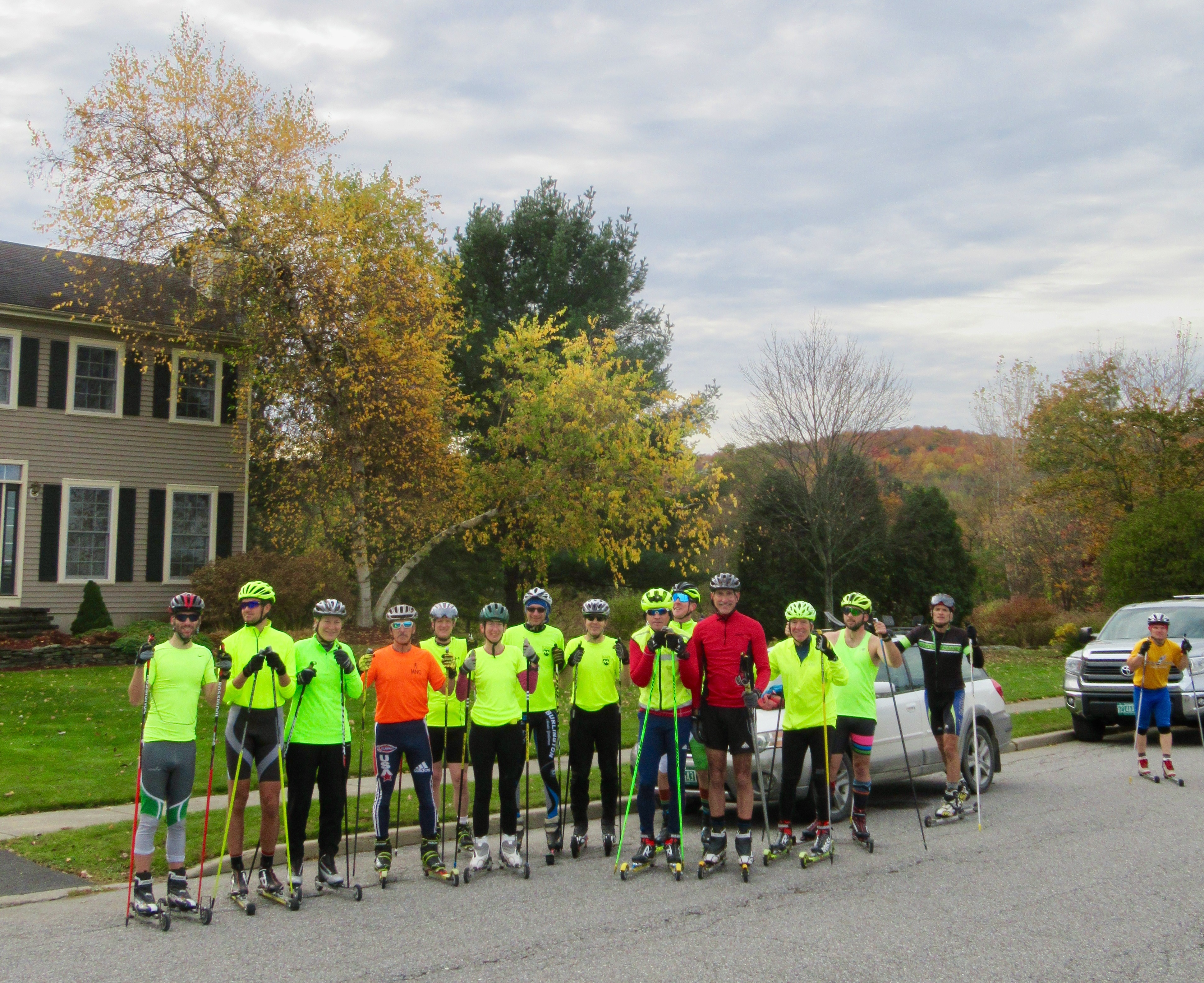 Just kidding; we’re all about the friendly rivalry. But our hip-hop-inspired Masters crew is more than ready for a showdown with the Peru Crew. This past Sunday marked the biggest-ever club attendance at the venerable Southridge Timetrial. Check out this squad of brightly-colored ski racers:
