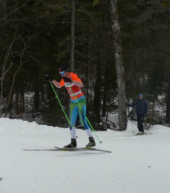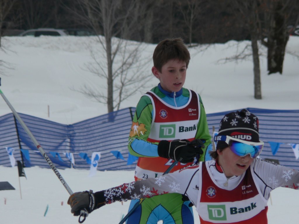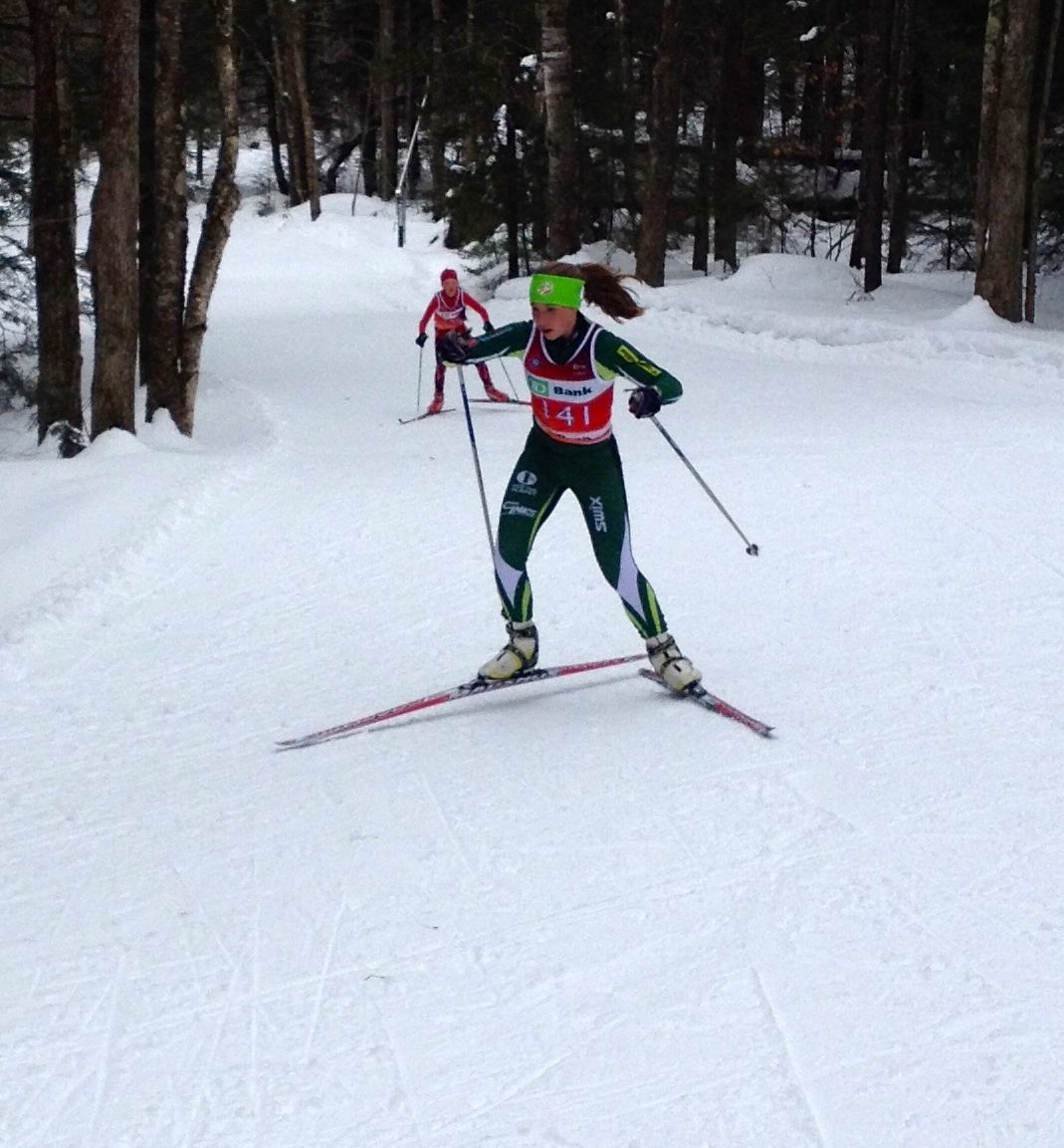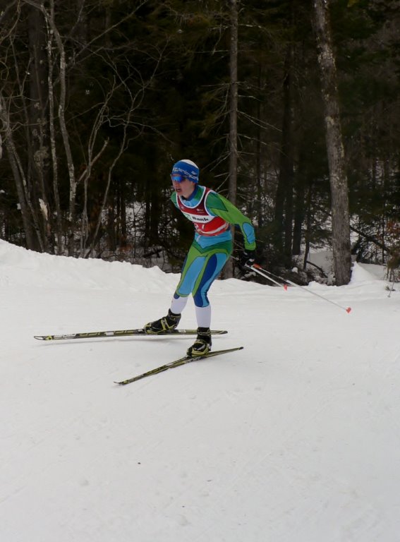 DAY TWO: For the boys (2002) we saw Charles Martel take first in the prologue only to get edged out by a few seconds in a great race by Will Koch in the afternoon skate pursuit.  Tim Cobb moved up from 5th in the prologue to take 3rd in the 2001 pursuit and Justin Schaaf in his first year of ski racing finished the morning in 8th and 9th in the pursuit. The boys 2000 class had the deepest field of very good skiers. In the morning classic prologue Greg Burt was 3rd, Kai Richter 7th and Conor Munns 8th.  The afternoon skate pursuit saw Greg fall one position to 4th, Kai held his place for 7th and Conor was in 11th.