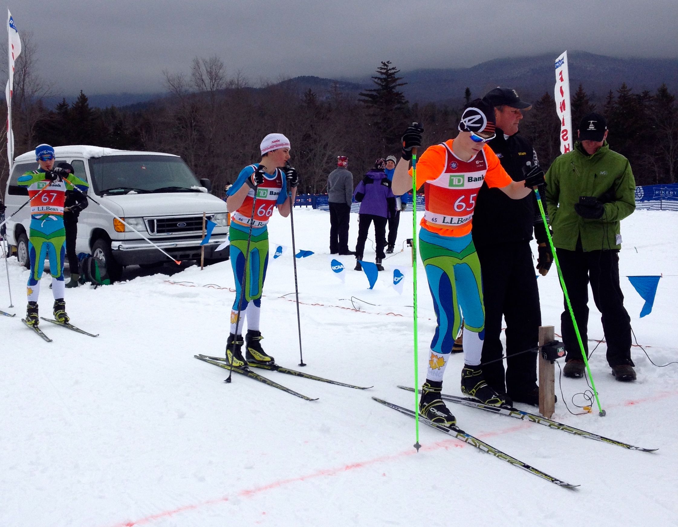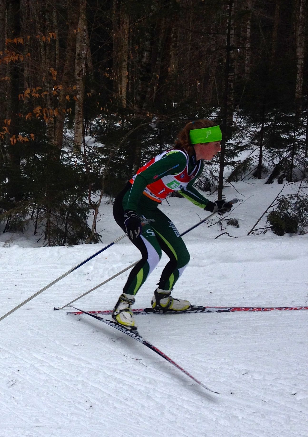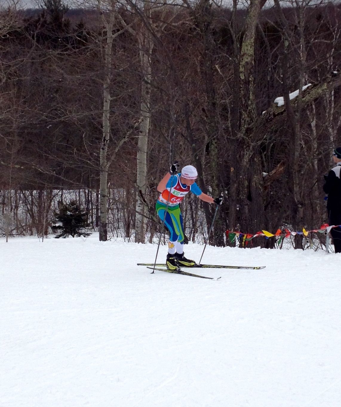 DAY TWO: For the boys (2002) we saw Charles Martel take first in the prologue only to get edged out by a few seconds in a great race by Will Koch in the afternoon skate pursuit.  Tim Cobb moved up from 5th in the prologue to take 3rd in the 2001 pursuit and Justin Schaaf in his first year of ski racing finished the morning in 8th and 9th in the pursuit. The boys 2000 class had the deepest field of very good skiers. In the morning classic prologue Greg Burt was 3rd, Kai Richter 7th and Conor Munns 8th.  The afternoon skate pursuit saw Greg fall one position to 4th, Kai held his place for 7th and Conor was in 11th.