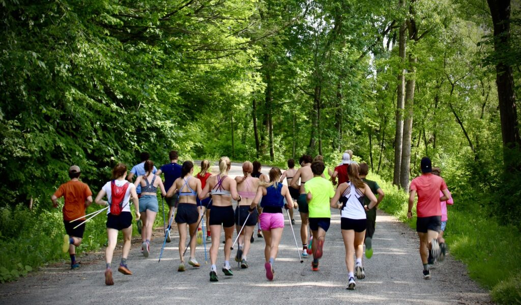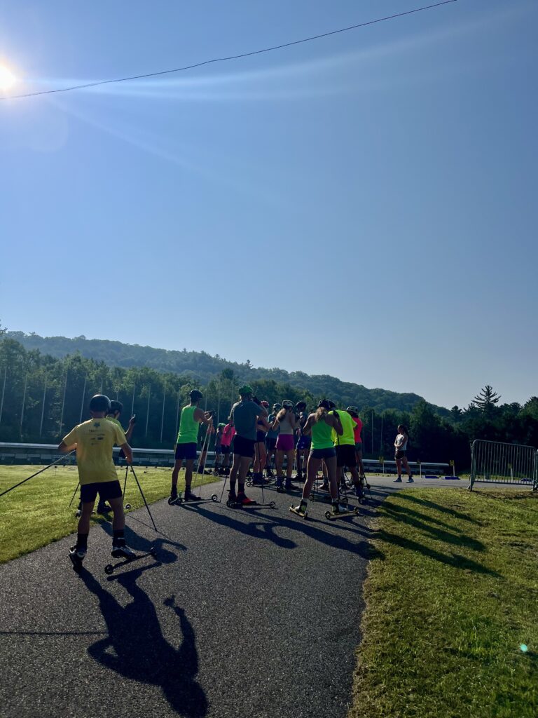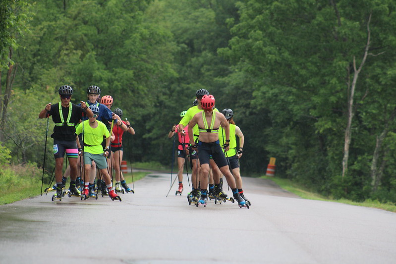 Skate intervals at Road 101 near Smuggs. A very scenic and lengthy hill for some good work…the only problem was the thunder and lightning that rolled in near the end of the workout. We ended up cutting the whole thing short which was a bummer (especially because this road isn’t exactly nearby) but safety has to win-out in these cases. It was still great to see a big pack of really strong skiers working together, and we definitely caught the eye of some locals as this is not one of our typical rollerski areas.