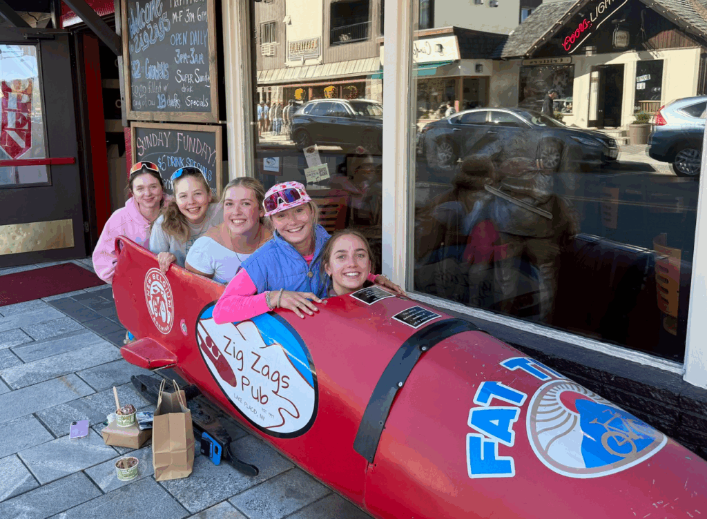 After the races were over, the day was still young! It was only just after lunchtime and the sun was shining, so we headed into town to be tourists for a bit. Crepes and ice cream were consumed, bobsleds were tested out, and everyone got to relax a little. We also coordinated with some other club friends to plan for the busy day ahead…