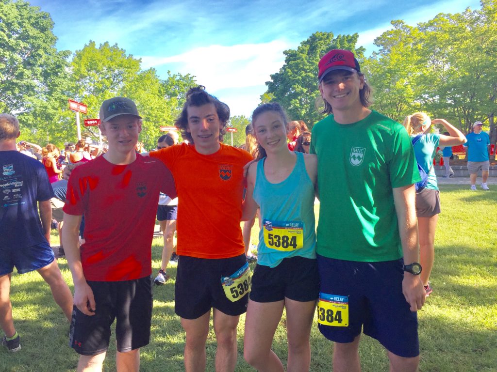 - Julia Thurston, Kate Carlson, and Taylor Carlson teamed up with some adults to run a great relay…pretty cool to see young athletes getting in on the big event!