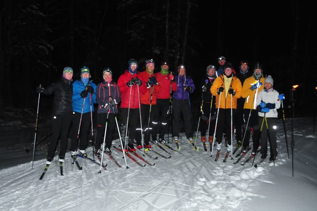 Our MNC Masters could be seen all over New England this past weekend, participating in various races and social events. The weekend kicked off with a headlamp ski and potluck, graciously hosted by Jim Fredericks and JoAnn Hanowski at their home. Despite the chilly temps, many Masters went for a great evening ski on the freshly groomed trails, See more photos of the evening here.
