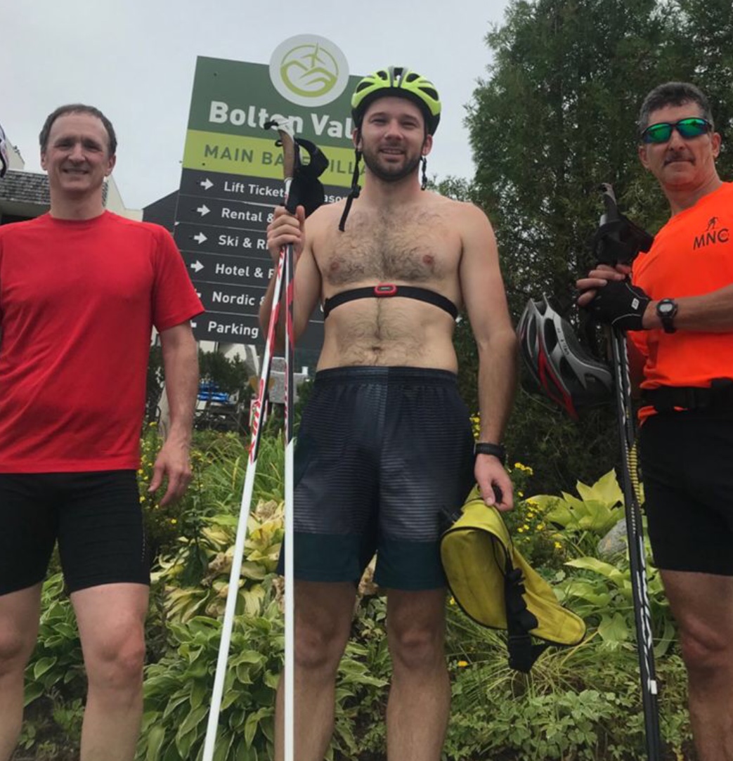 The MNC Masters have continued to push the envelope, building their uphill rollerski skills in preparation for the aforementioned epic showdown with the Peru Nordic Masters at the Climb to the Castle rollerski race. There is no official counter, but Mic-Drop Millar and Mix Master Mike Gaughan have what we believe is the record for number of skis up Bolton in a single month.