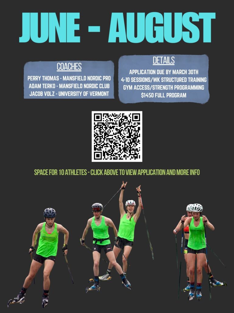 Each summer, Mansfield Nordic welcomes some of the best U23 skiers to Vermont to train together! An application can be found below for this program, designed for post-high school athletes. Up 10 to athletes will be selected to train with the Mansfield Nordic Pro Team over the summer coached by Perry Thomas, with an additional summer training group for collegiate-aged skiers offered by coach Adam Terko.