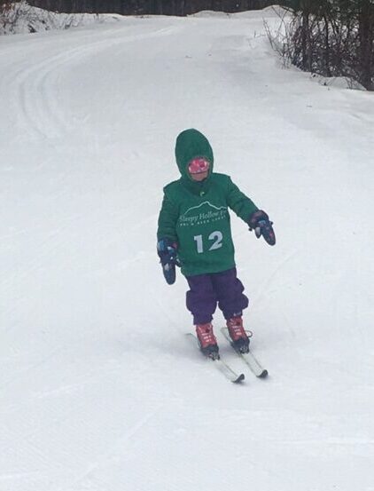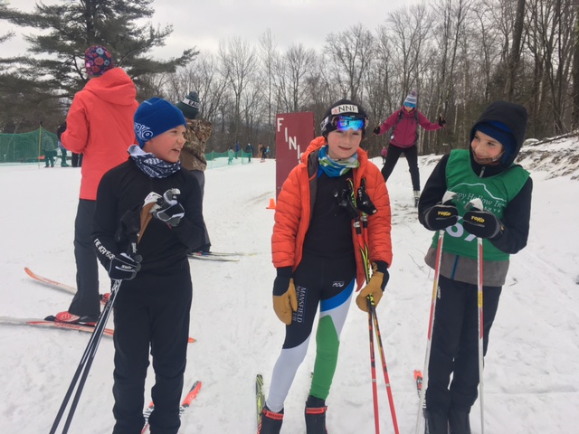 The festivities started off with the lollipop race where Daisy Tremble and Ollie Laber easily conquered the loop around Molly’s Meadow. We had a large contingent of racers in the grade 1/2 race: Oliver Tremble, Ben Cross, Ansel Page and Mazzy Merrit all skied the 1 km loop down past the Inn, up Tina Turner and back to Molly’s Meadow. MNC skier Finn Laber and the other 3rd & 4th graders all skied 2 loops of the course and many of them opted to ski over the whale humps on the lap heading out of Molly’s Meadow. MNC Racers Logan Cichanowski, Liam Vile, Ansel Sprague and Oakley Crawford all skied 3 laps of the course and did an excellent job skiing up those hills on Tina Turner in the 5/6 race. Special shout out to Logan who skied an excellent race in his first race ever! Mary Moyer skied the 7/8 race, her first race ever, and did a fantastic job as well! Congratulations to all these MNC skiers!
