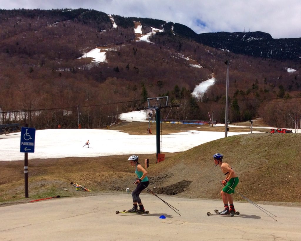 Although we are on the verge of May, patches of snow still dot the alpine mountains across Vermont. But just as snow melts from the slopes, mud and dirt begin to clear from the roadways. Do you dust off your rollerskis and pound the pavement? Or do you wax up your skis and make one last go at the patches of snow?