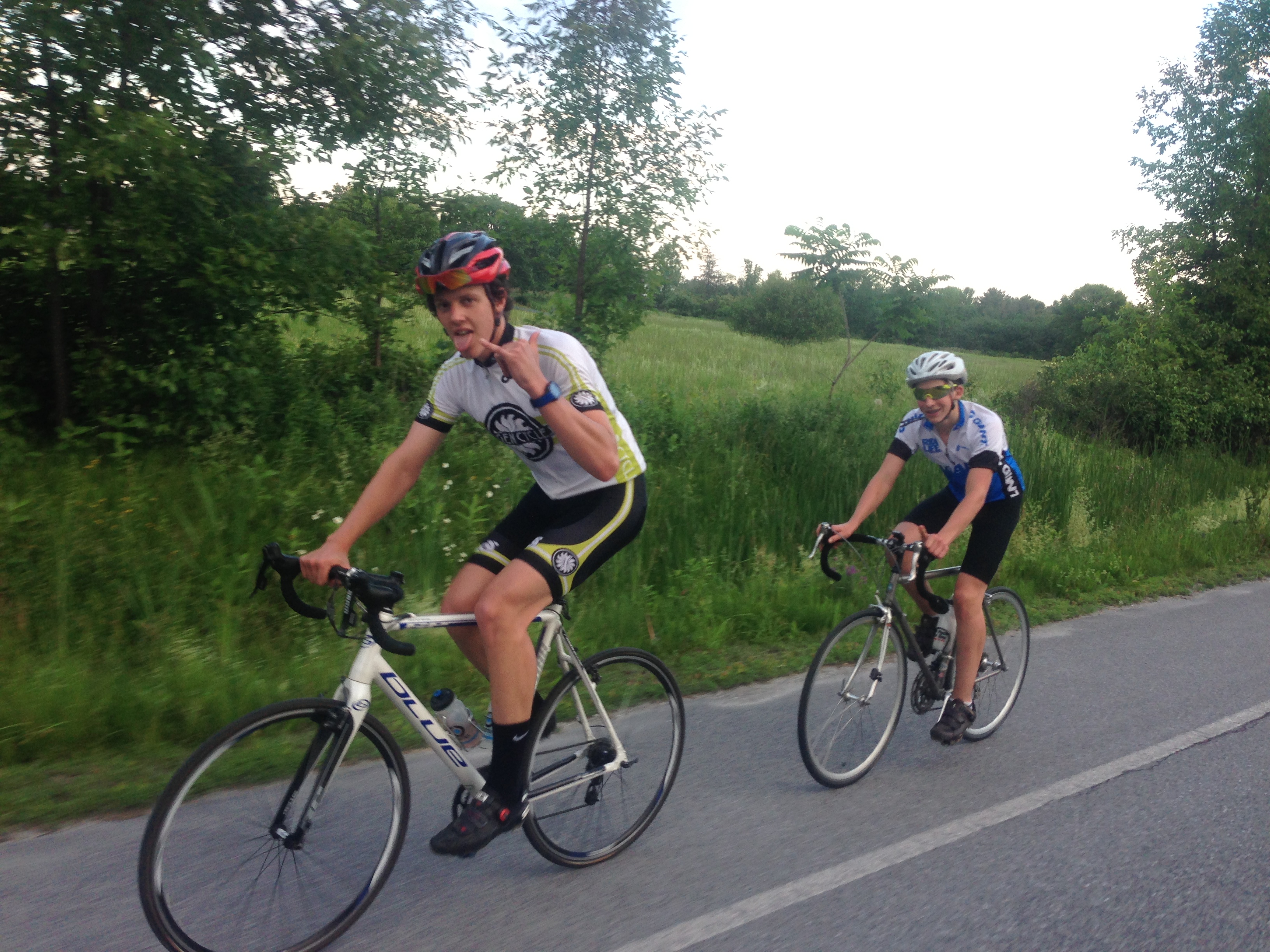 Bill Harmeyer catches air, Jack Hegman (2nd place 2014 Junior National champs) pre-jumps