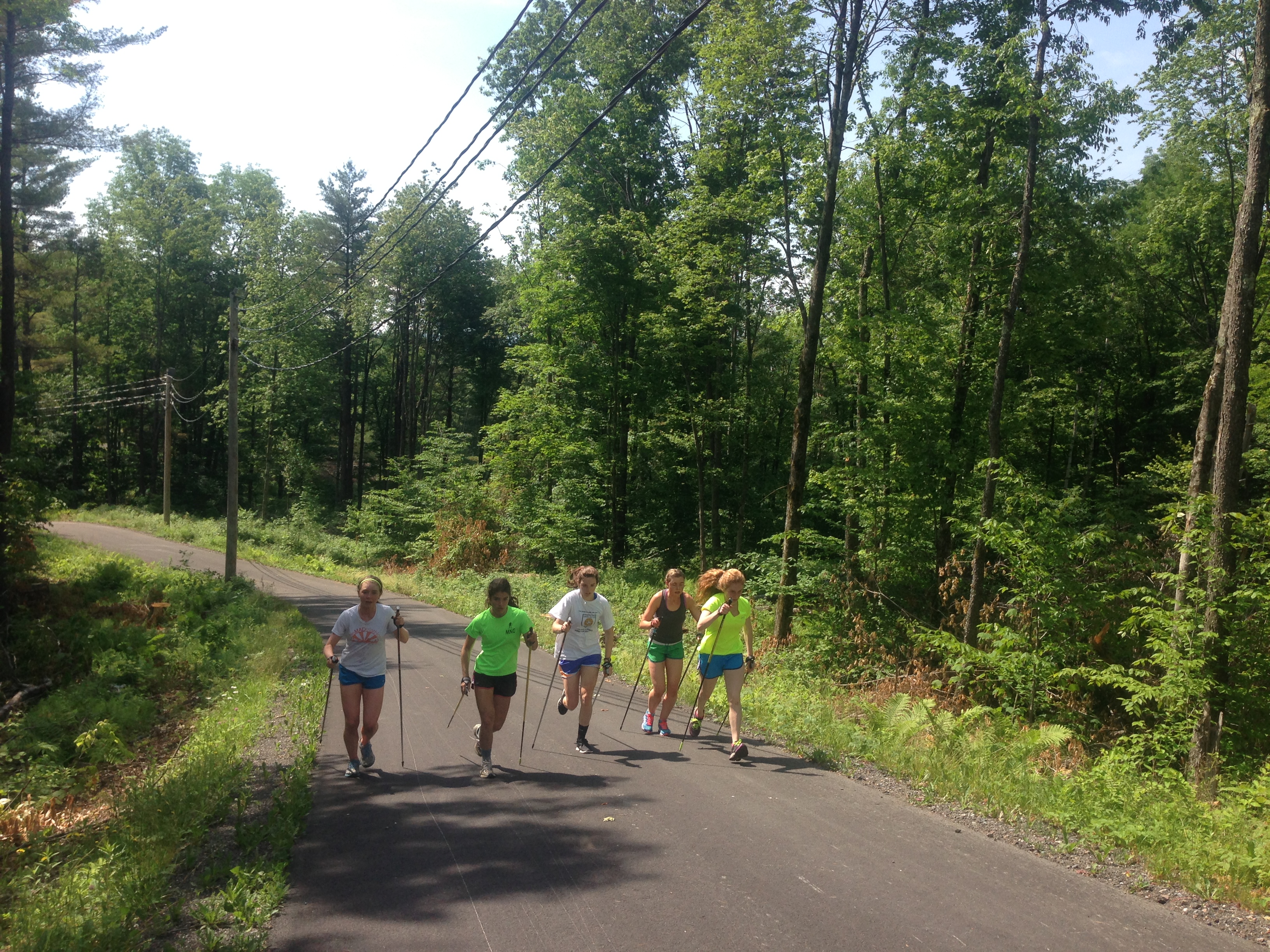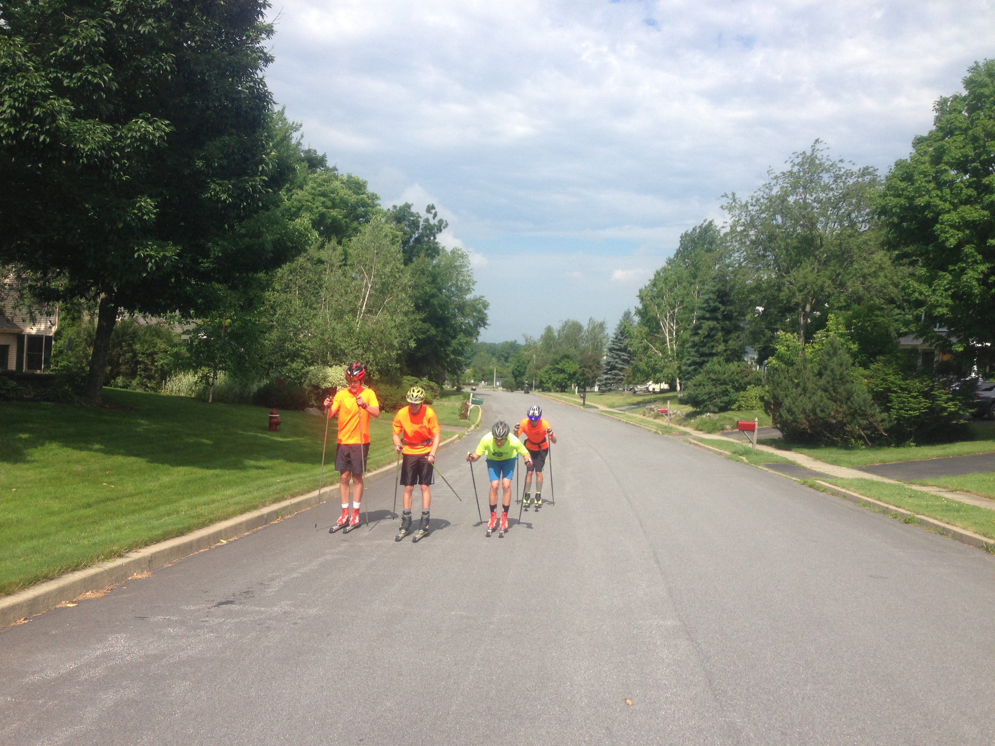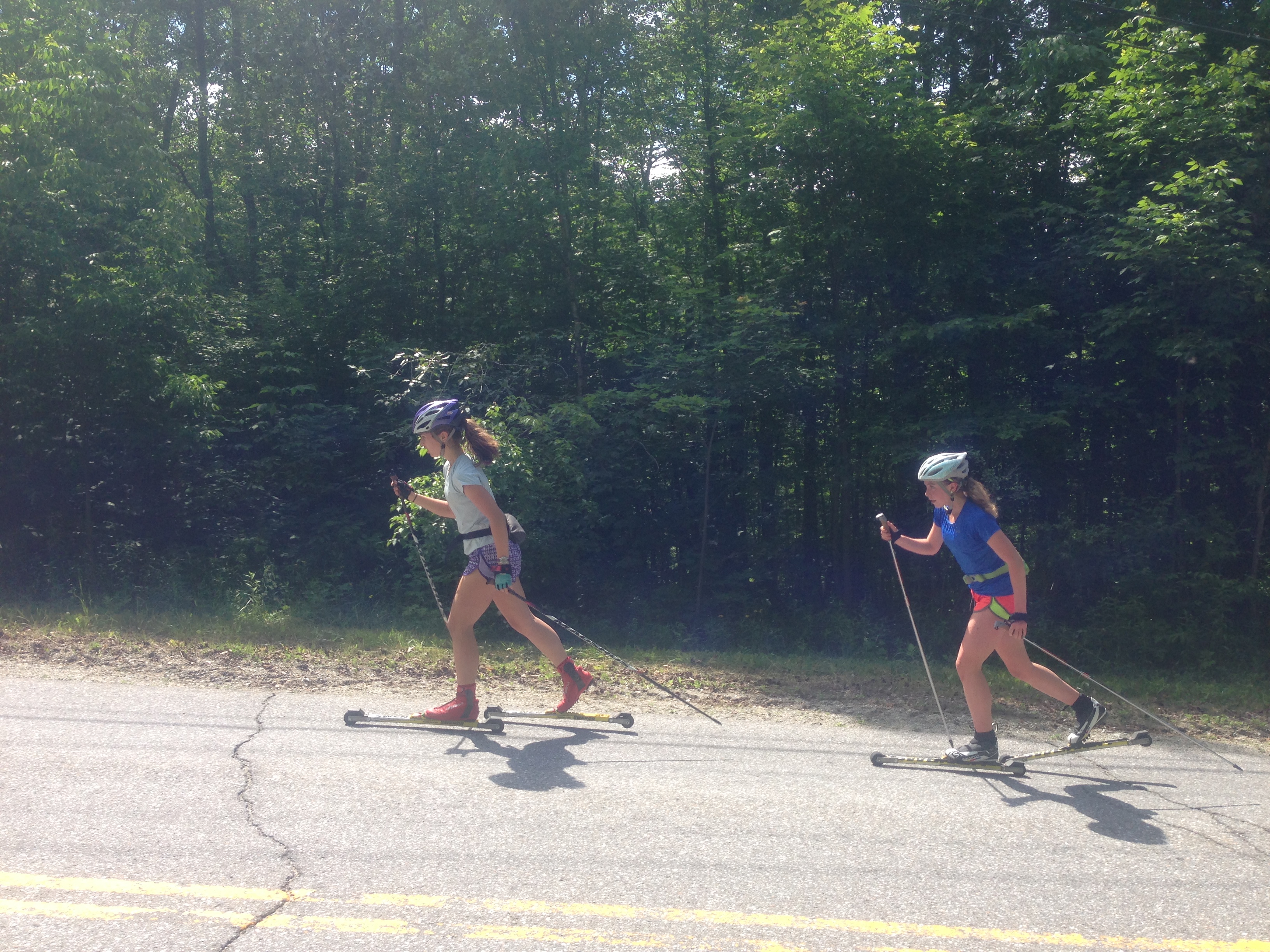 Highlight of the day last Thursday was the relay races which teamed up BKL, Juniors and UVM skiers. Instead of a boring “tag” or handoff of a baton, we used the UVM jackets/vests as the “baton” and skiers had to exhange them in the tag zone. With a nice little jump and some sharp corners there was a lot of thrills and spills.