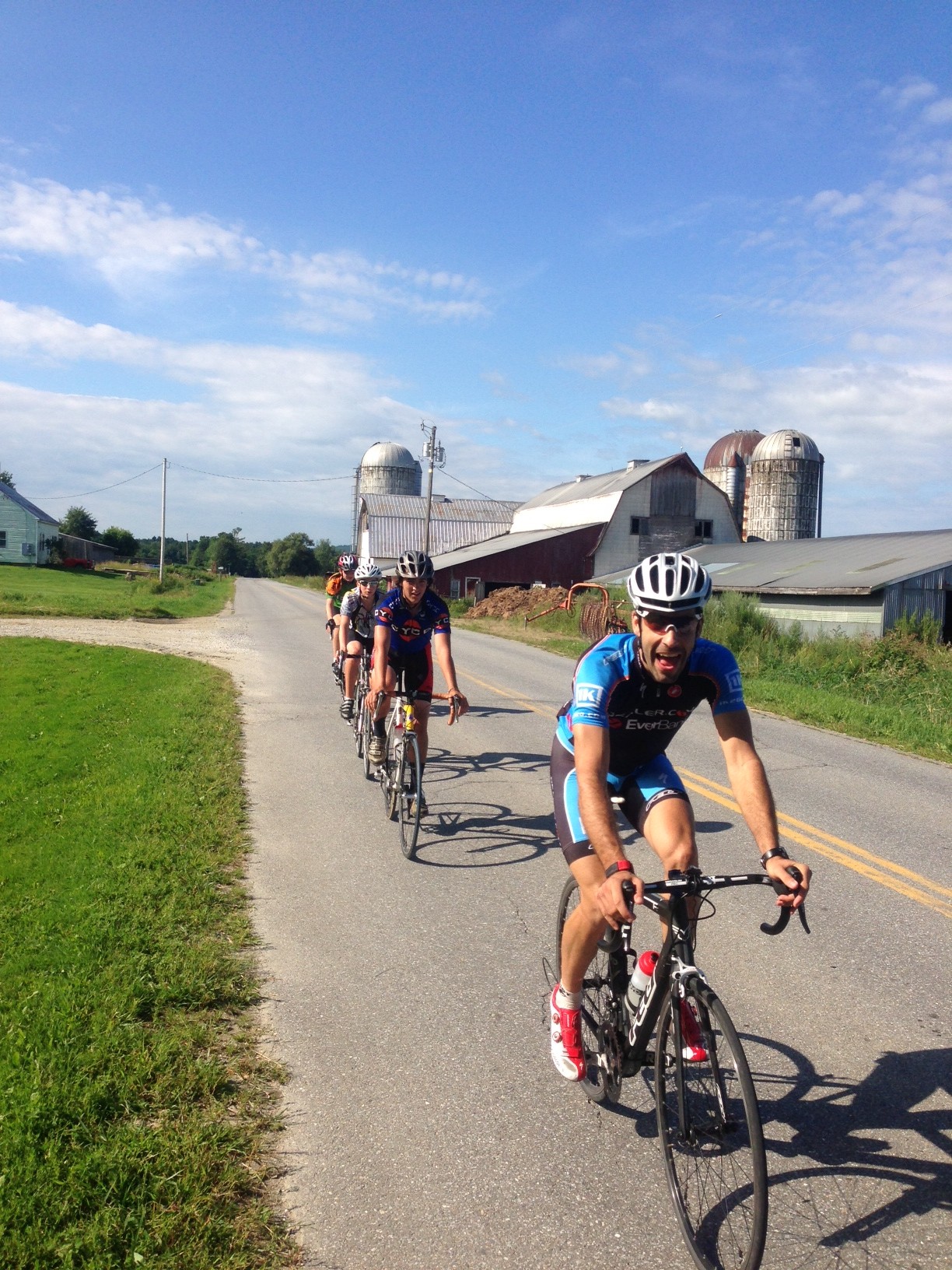 And today was the high-point of the week — doing a group bike ride with several family members including my own. Altogether we started with close to 20 riders that did some different lengths. The athletes along with Murray Banks, Gary Solow, Lawrence Carnahan, Roger Weston and I did the popular Tuesday Night Worlds loop which is an incredibly scenic 36 mile loop. The MVP from this morning had to be Greg Burt who made it the whole way even though it was only his 3rd road bike ride ever! Great job to all.