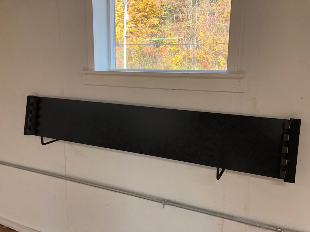 The MNCC is now equipped with a slide board! It does not look quite as nice as the one in this video, but it’s not surprising that with a cheap piece of laminated shelving and some materials left over from MNCC renovations you can make a pretty good simple version!